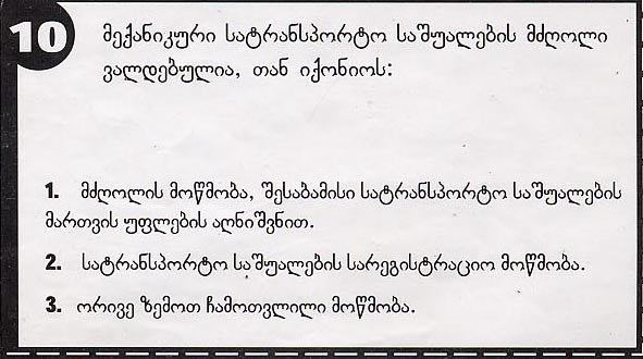 მართვის მოწმობის გამოცდის პრაქტიკული ტესტი